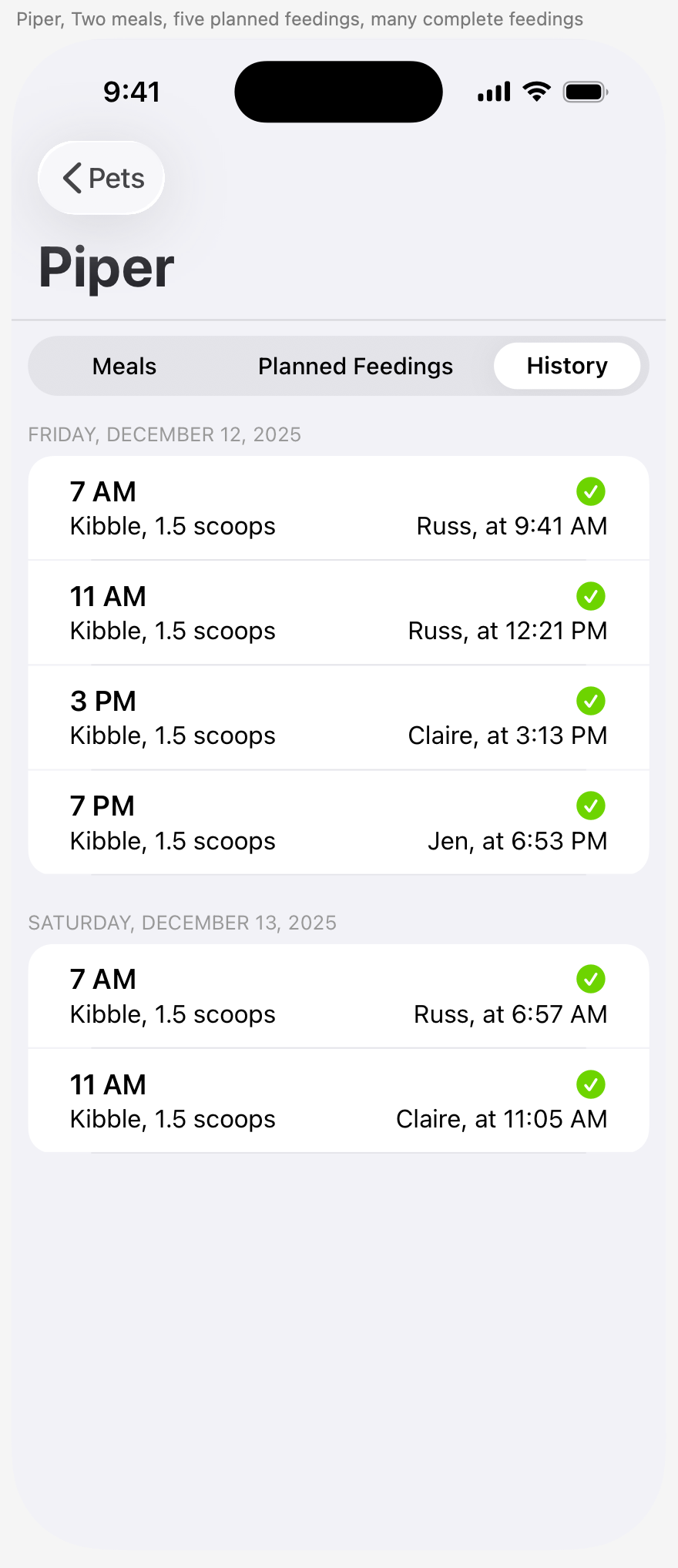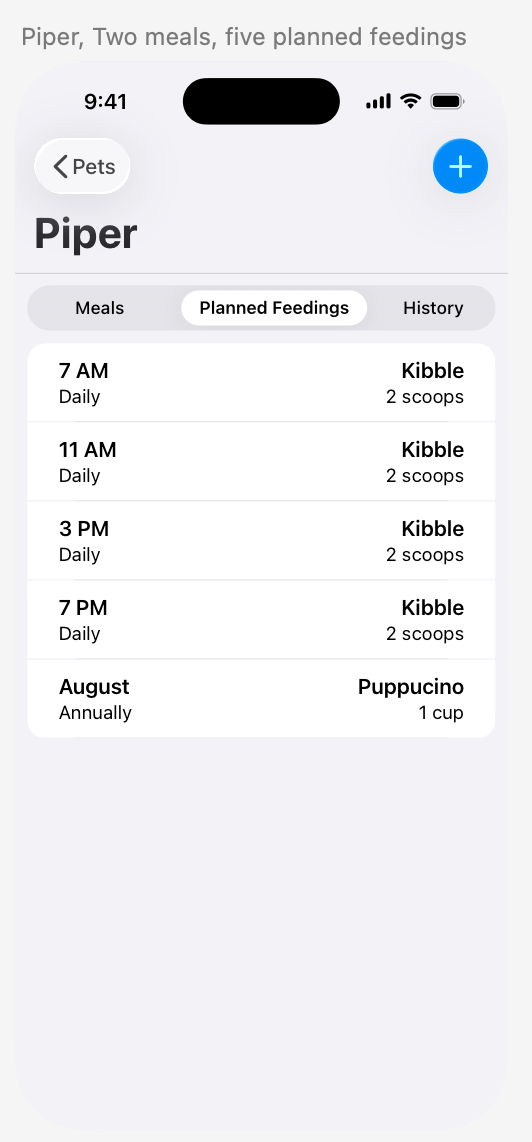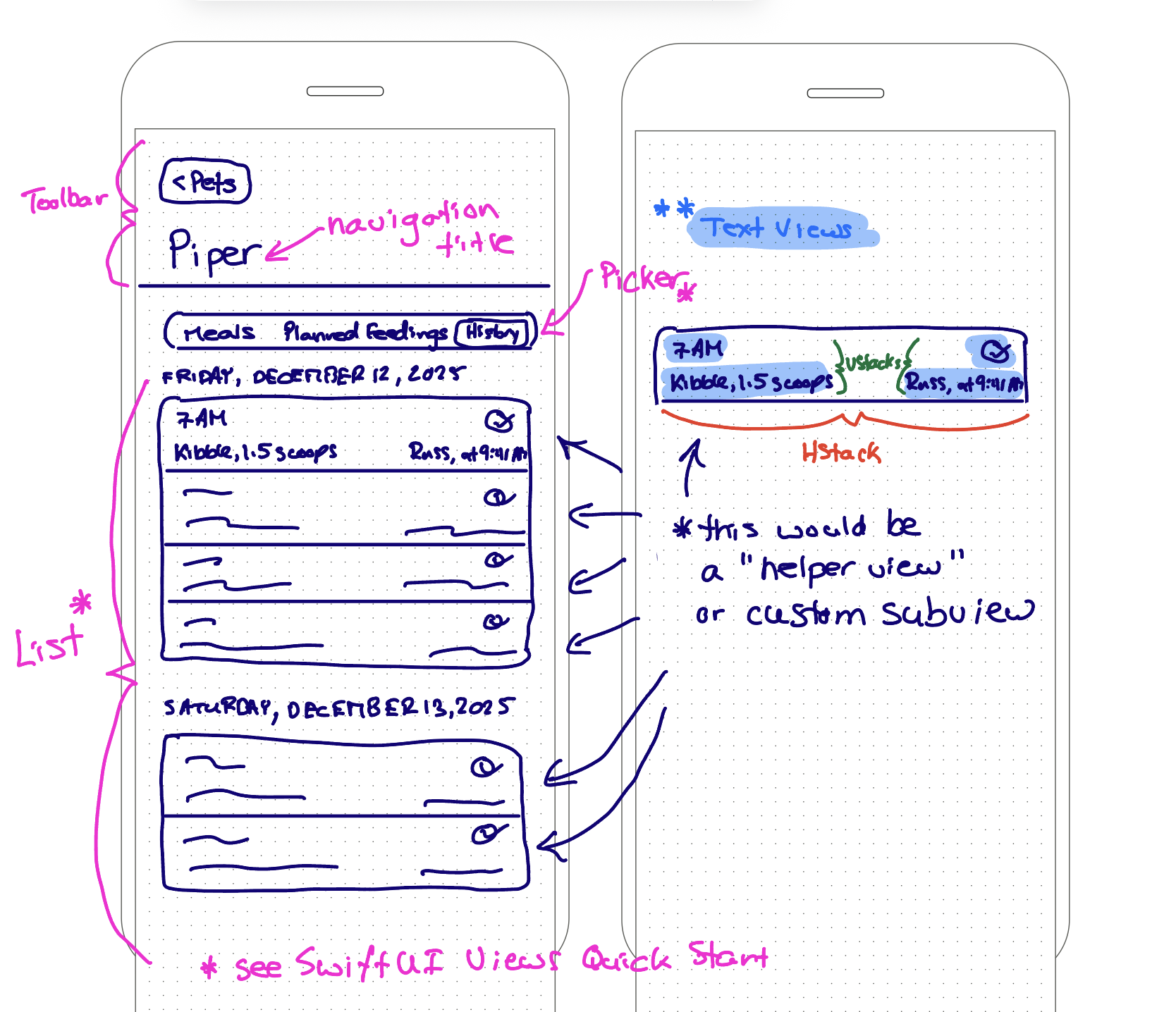 … then used several instances of that view back in the FeedingHistoryView: