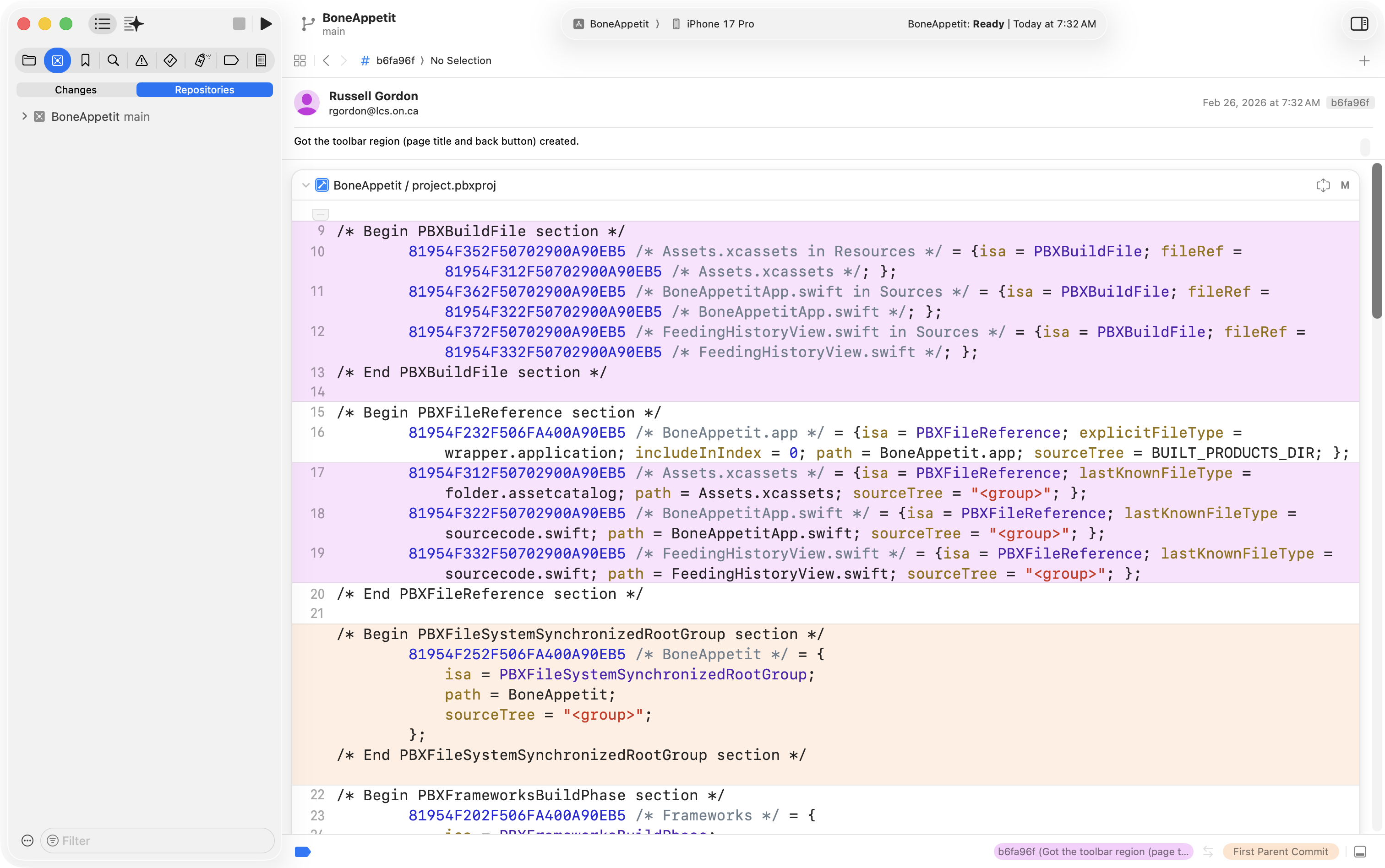 This was also good progress, so he committed and saved his work with this message: