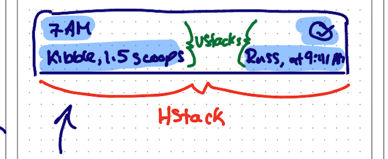 That’s a start, but not quite right. Next, he added used VStack in a couple of places to put some text on top of one another, as per his plan: