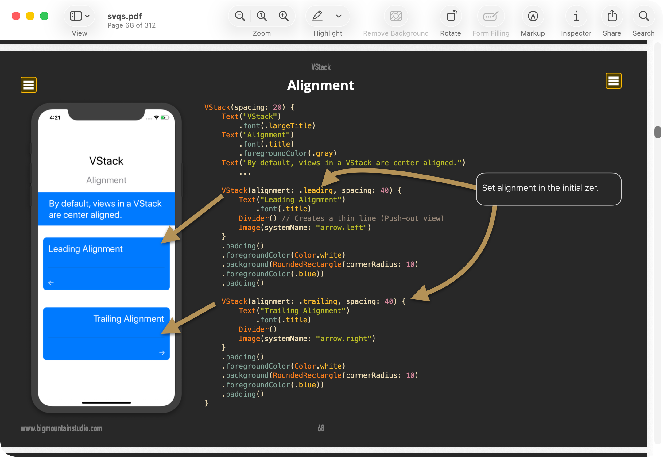 Consulting SwiftUI Views Quick Start helped him find the alignment option: