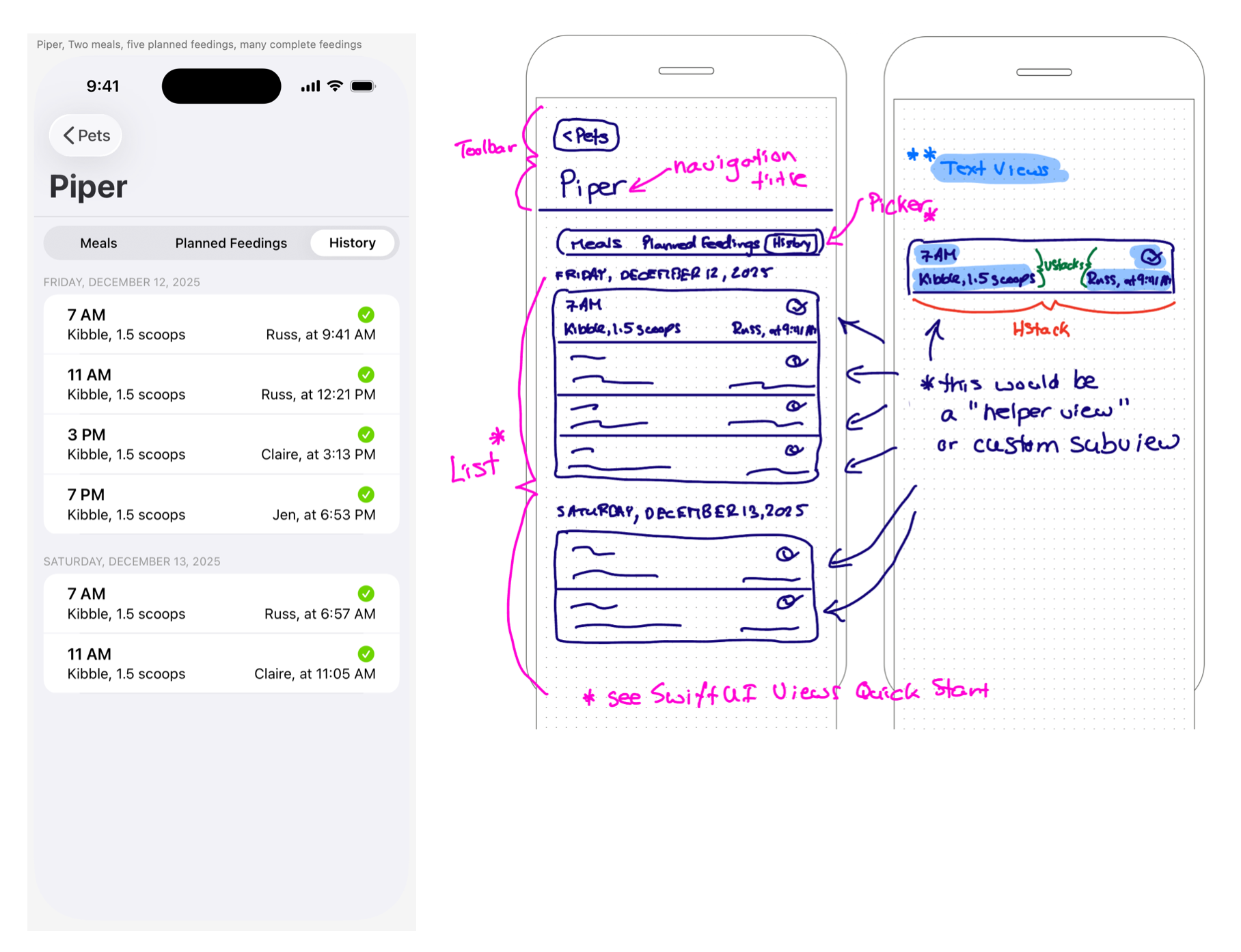 - From your app prototype made in Sketch earlier this year, working in class with a screenshot of a view selected by Mr. Gordon, you will author a rough plan, showing what stacks (H, V, and Z) and other views you plan to use.